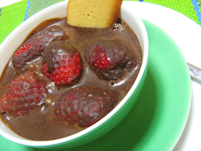 Entretanto prepare o bolo. Derreta o chocolate juntamente com as 125 g de margarina em banho-maria.Bata as gemas com o açúcar até obter uma mistura cremosa. Misture-lhes o chocolate e a margarina derretidas, a farinha previamente misturada com o fermento e as claras batidas em castelo mexendo sempre. Ponha o preparado numa forma sem buraco untada e polvilhada com farinha (eu usei uma forma rectangular, mas podem usar redonda) e leve a cozer cerca de 25 minutos. Retire do lume e deixe arrefecer.