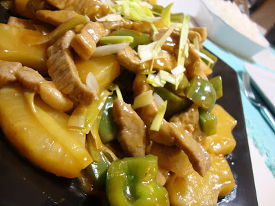 Fica muito parecido com a comida chinesa que comemos em qualquer restaurante e até eu, que tenho aversão a fruta em conserva me rendi e tenho agora uma latinha para quando me voltar a apetecer esta versão agridoce.