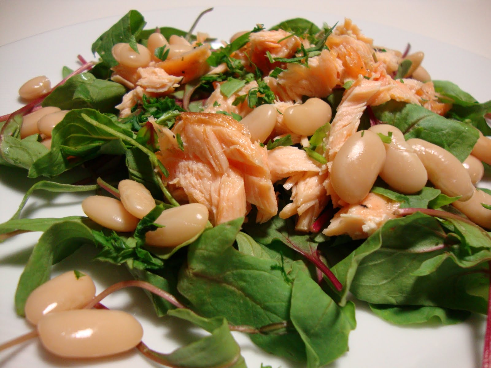 Salada de Espinafres Vermelhos, Salmão e Feijão Branco