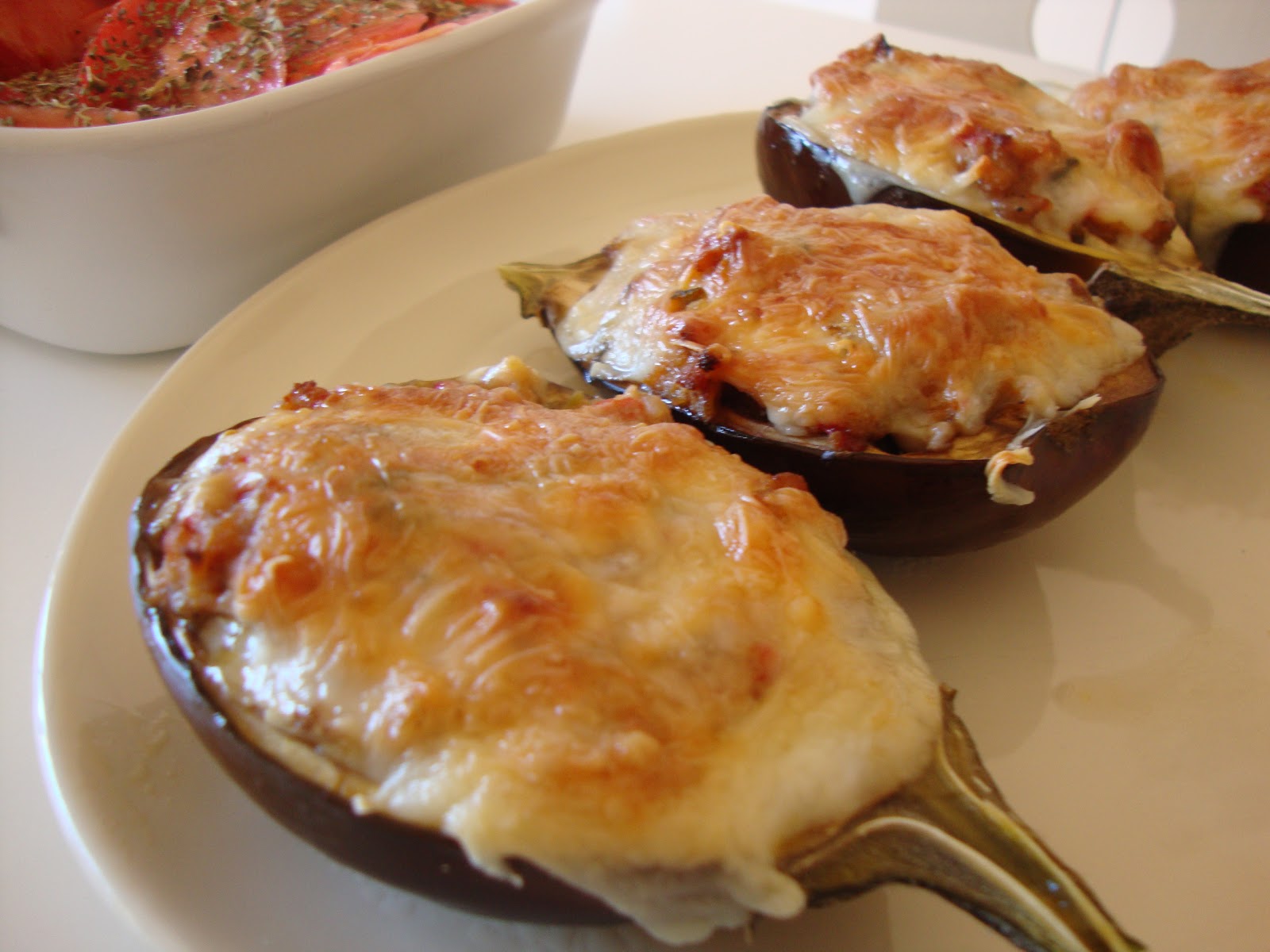 Destas duas receitas surgiram estas minhas batatas recheadas: o molho de tomate que a R. usou, e a adição do queijo da Nigella. O resultado foram umas batatas bastante saborosas e um acompanhamento diferente.