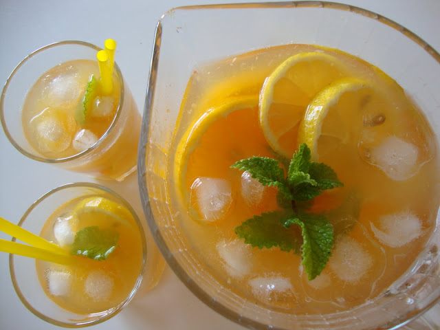 Seja inverno e mesmo verão, o chá continua a ser uma das minhas bebidas favoritas. E mesmo com calor bebo muitas vezes o meu chá bem quente. Mas há dias em que um verdadeiro chá gelado é a bebida ideal para ir bebericando e ir afugentando o calor. E desta vez o chá levou polpa dos primeiros pêssegos caseiros da época que já abundam cá em casa.