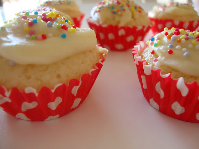 Entretanto prepare a cobertura. Bata o queijo creme com o açúcar em pó e acrescente o chocolate branco previamente derretido. Misture bem e coloque com a ajuda de uma colher sobre os queques já frios.