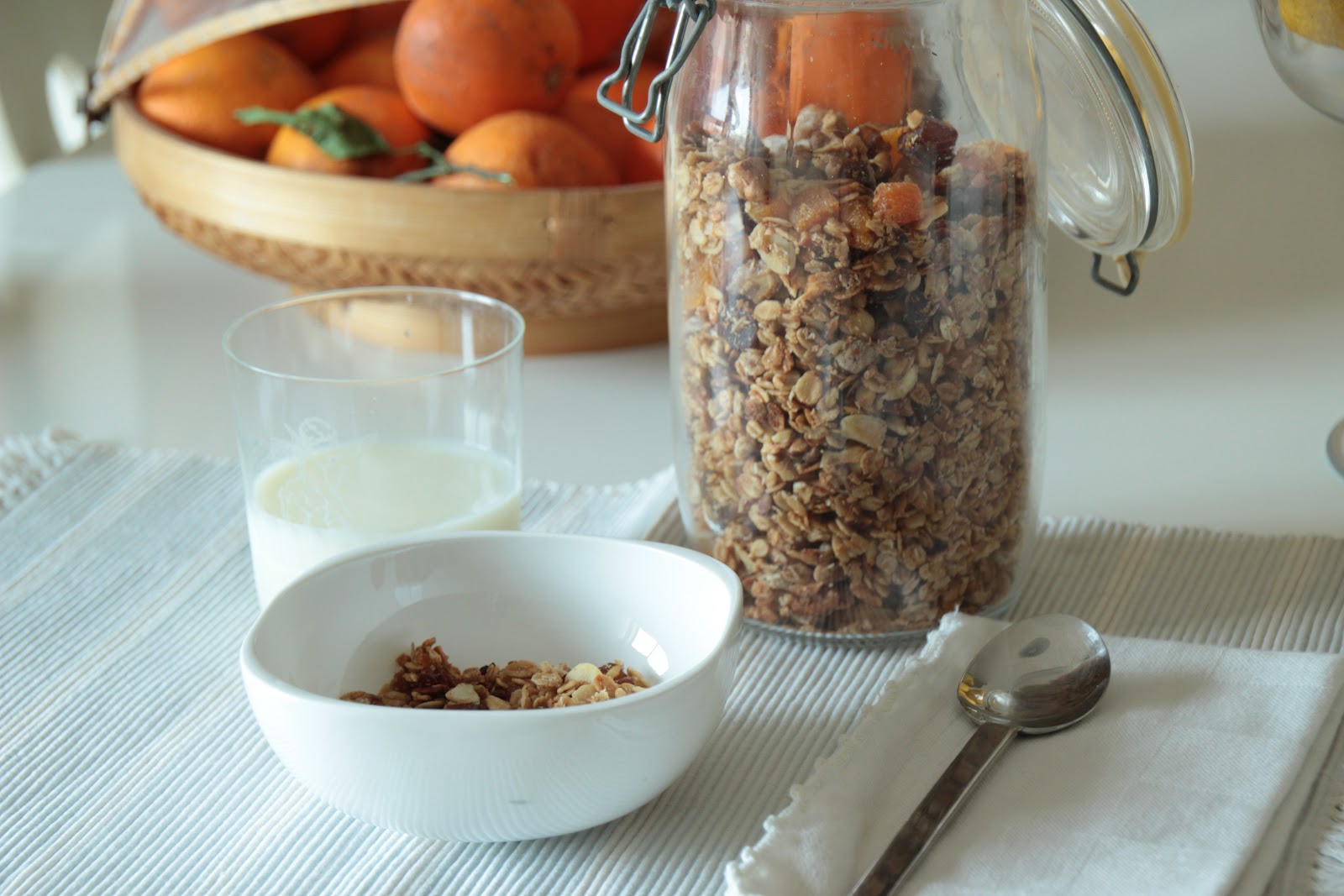 Muesli ou Granola, nunca sei bem o que lhe chamar... Mas o nome é o que menos interessa nesta combinação de cereais e frutos secos para o pequeno almoço ou para pequenos lanches durante o dia.