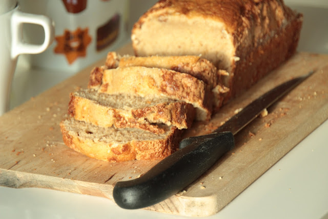 Unte uma forma rectangular de bolo inglês com manteiga e polvilhe com farinha. Coloque a mistura na forma e leve a cozer em forno médio (180ºC) durante cerca de 40 minutos ou até o bolo estar cozido.