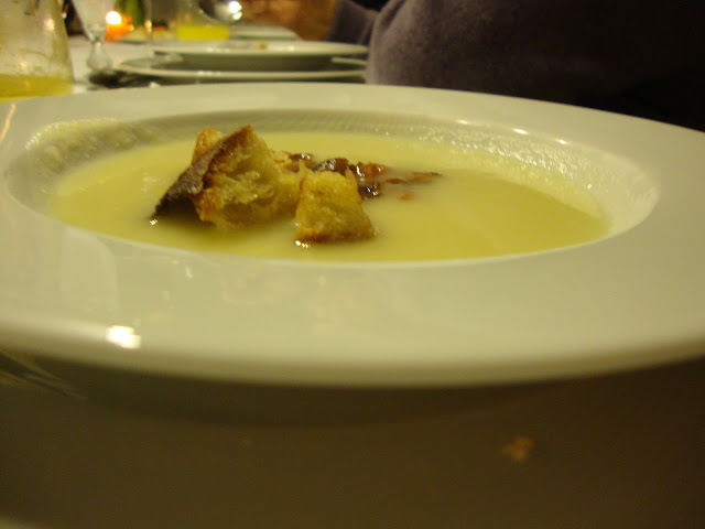 Creme de Alho Francês com Croutons de Alho e Bacon Crocante