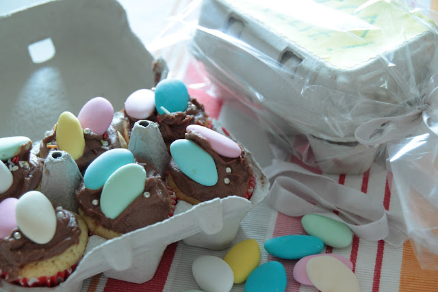 Para ficar um presente mais mimoso, coloque os mini-cupcakes em caixas de ovos. Por cima coloque uma etiqueta a desejar Boa Páscoa e faça um embrulho bonito.