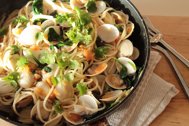 Esparguete com Ameijoas, Chili e Gengibre