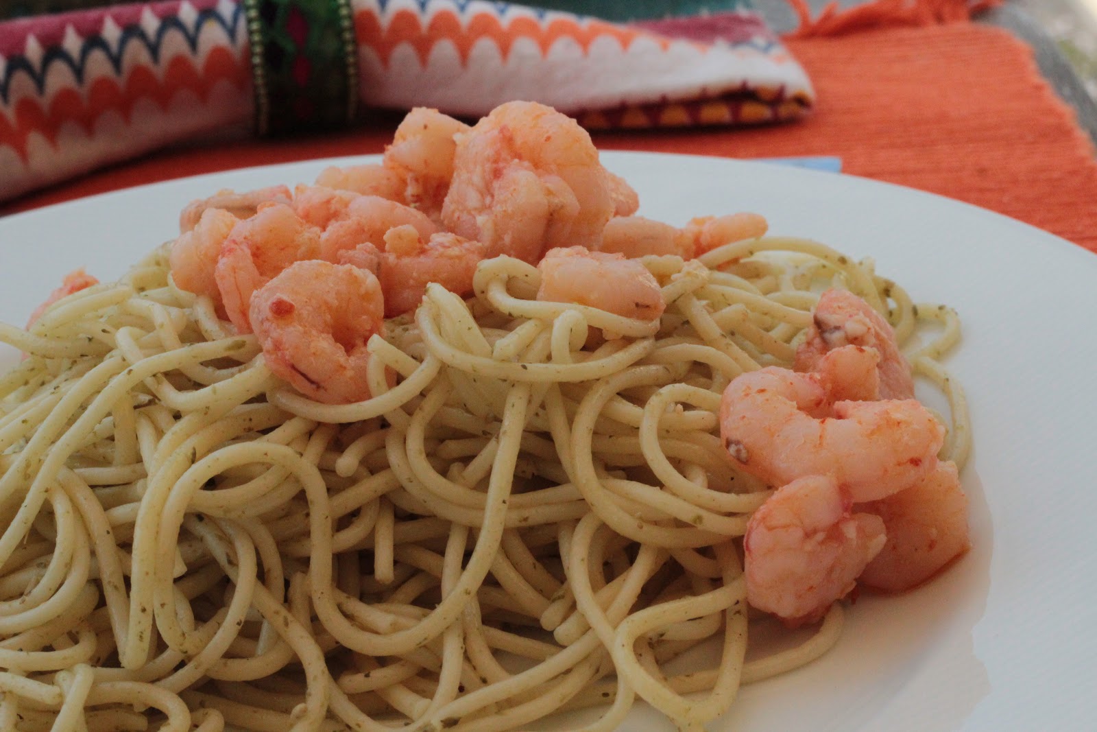 Esparguete com Pesto e Camarão Salteado