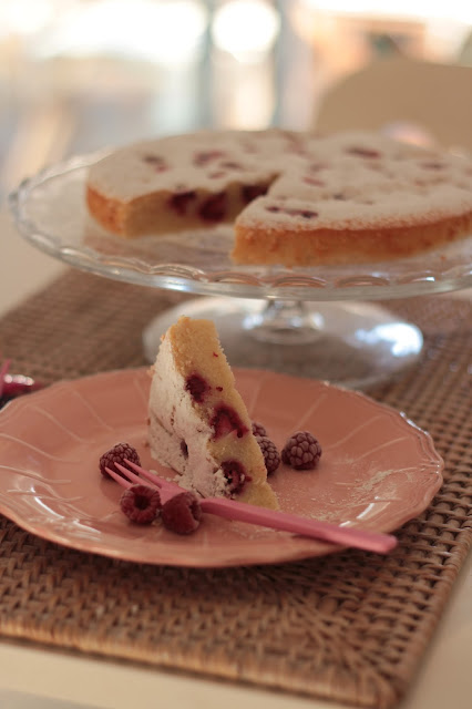 Os livros novos têm sempre um efeito mágico cá em casa. E se forem de culinária é difícil que logo na primeira espreitadela não tenham uma receita que me façam correr para a cozinha. A chegada de um novo livro da Donna Hay – de quem eu sou super fã – teve, mais uma vez esse efeito. Claras, amêndoas e lindas framboesas, tudo coisas que havia cá em casa e, em partícula no caso das claras a precisarem de serem usadas. Melhor era impossível. Um bolo simples e irresistível, além de lindo que só ele…. Uma sugestão para o fim de semana.