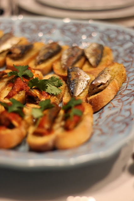 Escorra as conservas e coloque uma petinga ou um carapauzinho em cada tostinha. Tempere com um pouco de pimenta, salpique com a salsa picada e regue com um fio de azeite.