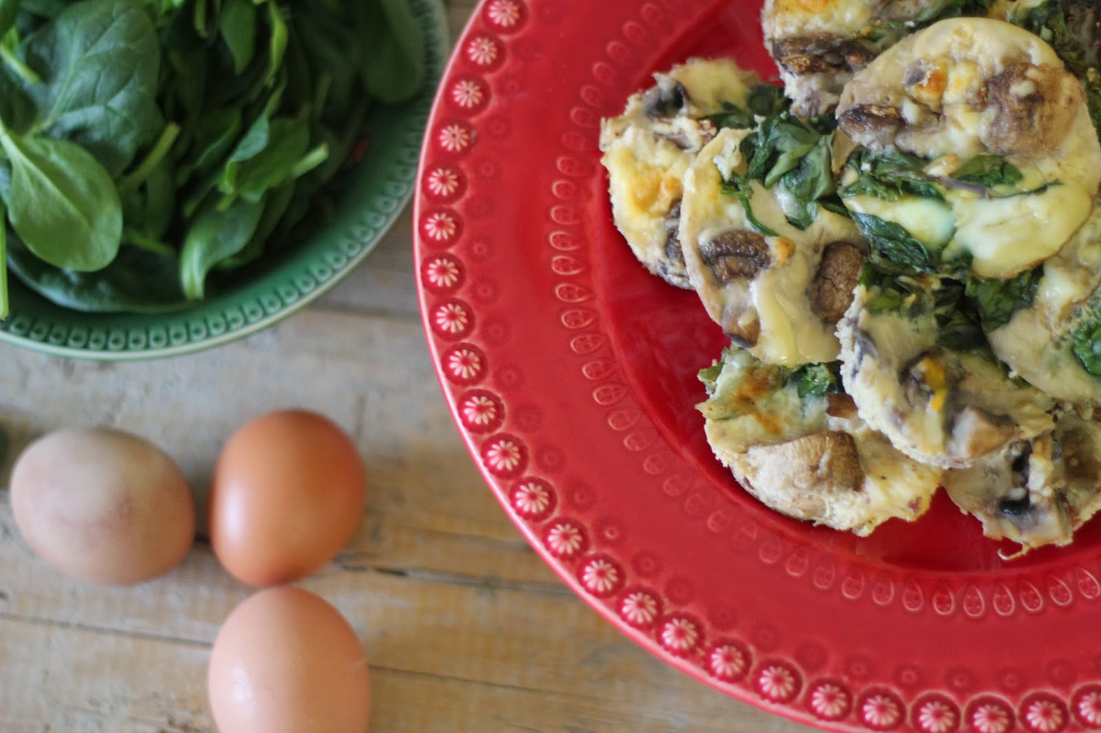 Lave os cogumelos e as folhas de espinafres e seque bem. Corte depois os cogumelos em quantos divida-os pelas forminhas, assim como as folhas de espinafres, Tempere ligeiramente com um pouco de sal e pimenta. Acrescente depois um pouco de queijo ralado a cada uma das forminhas.