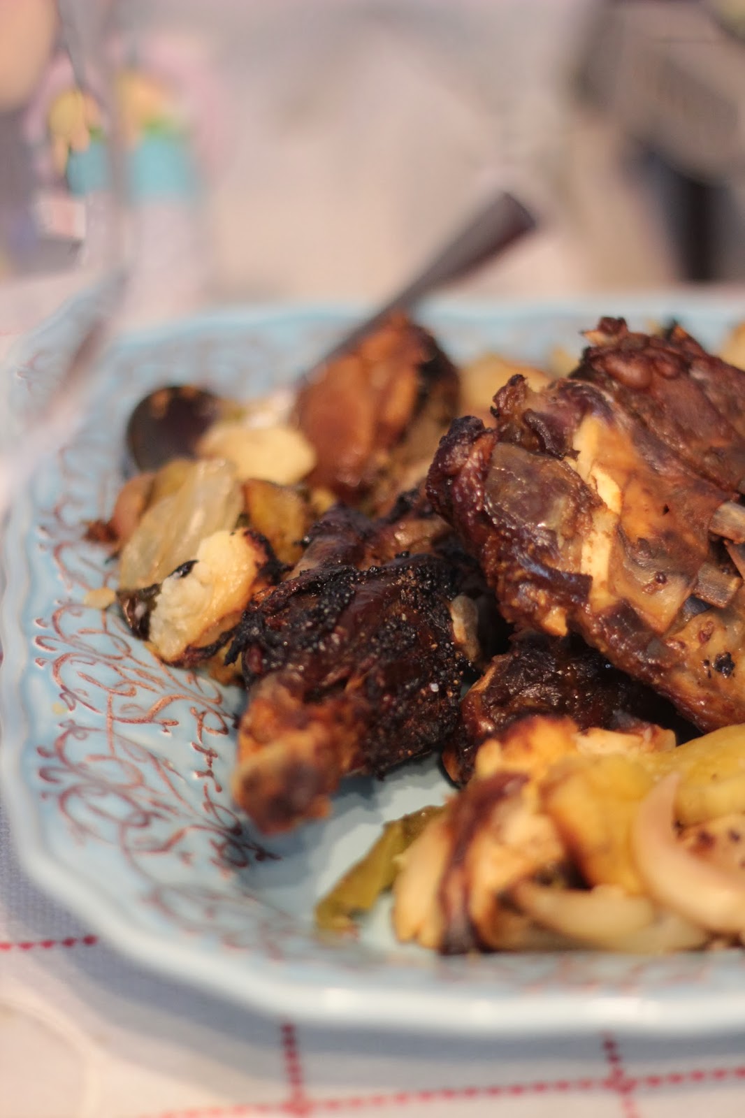 Leve depois o borrego ao forno previamente aquecido a 180ºC e deixe assar cerca de 1h30 ou até a carne estar macia e bem assada. (Ao cozinhar a carne liberta os seus sucos e gordura não sendo preciso juntar líquido, no entanto, se preferir pode juntar um pouco de vinho branco. Eu não juntei)