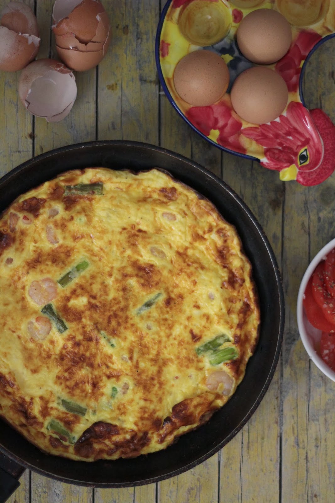 Frittata de Camarão com Espargos Verdes