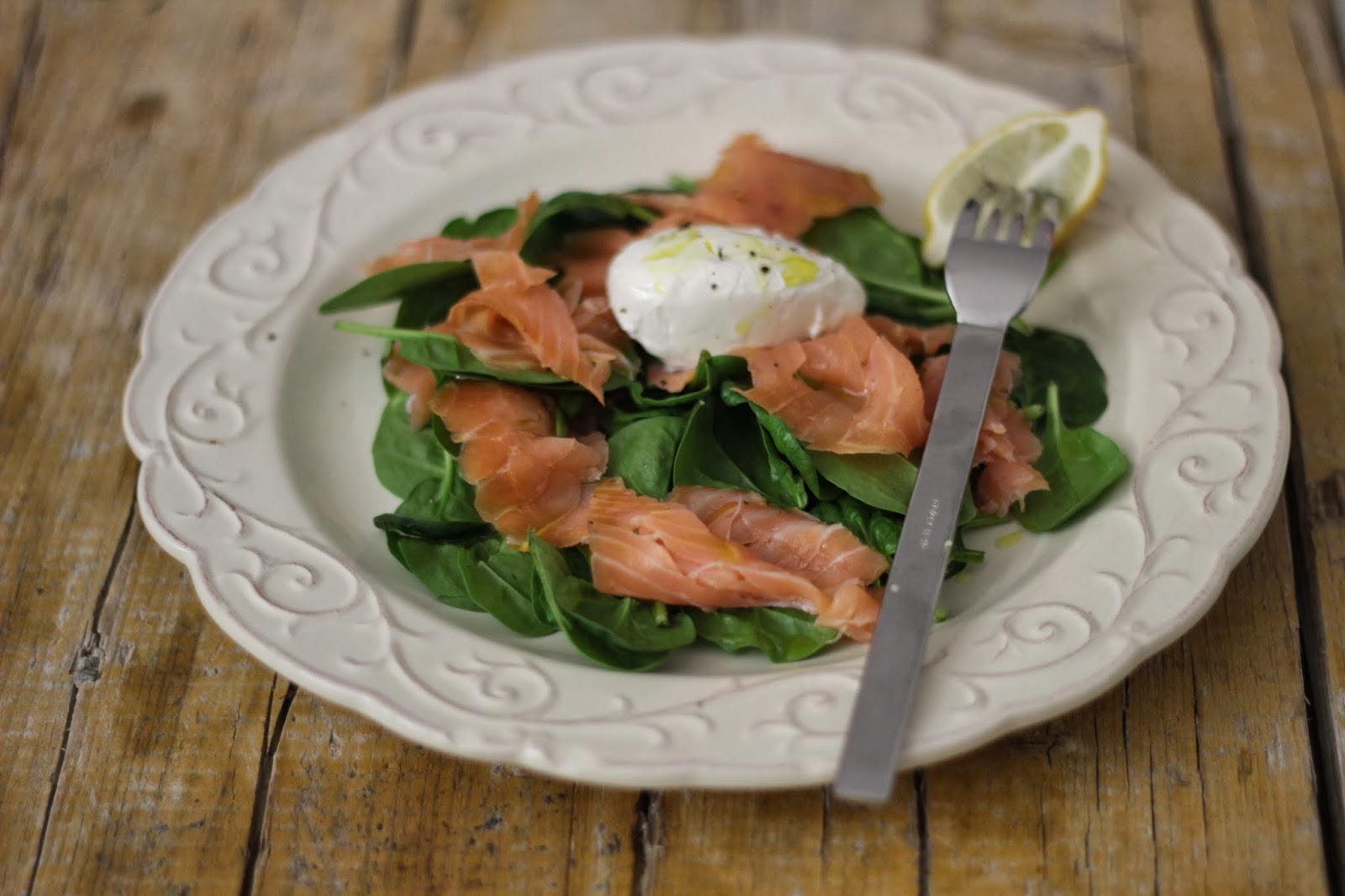 Salada de Espinafres, Salmão Fumado e Queijo Creme