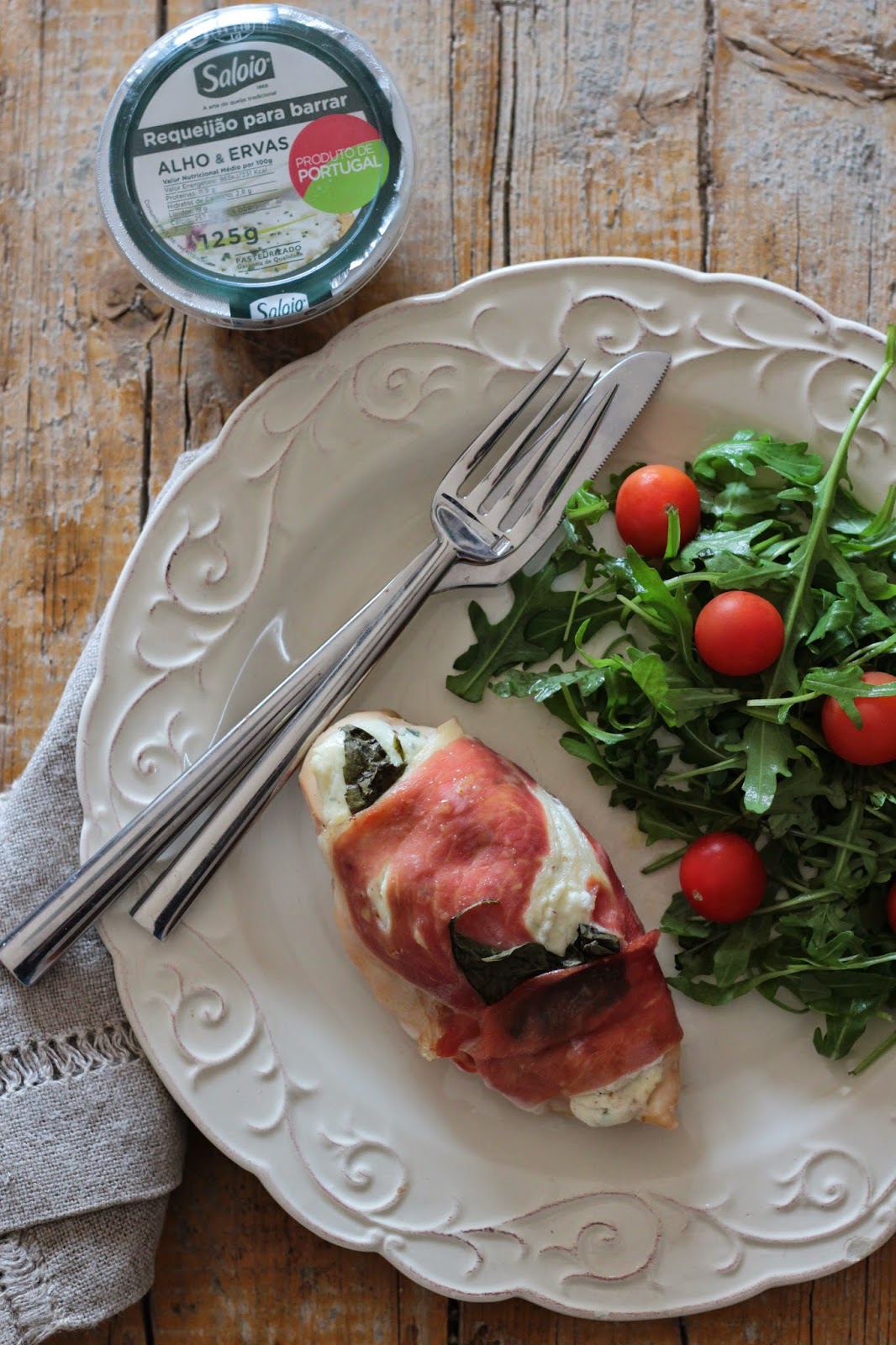 Peito de Frango com Requeijão Cremoso com Ervas e Alho, Presunto e Manjericão