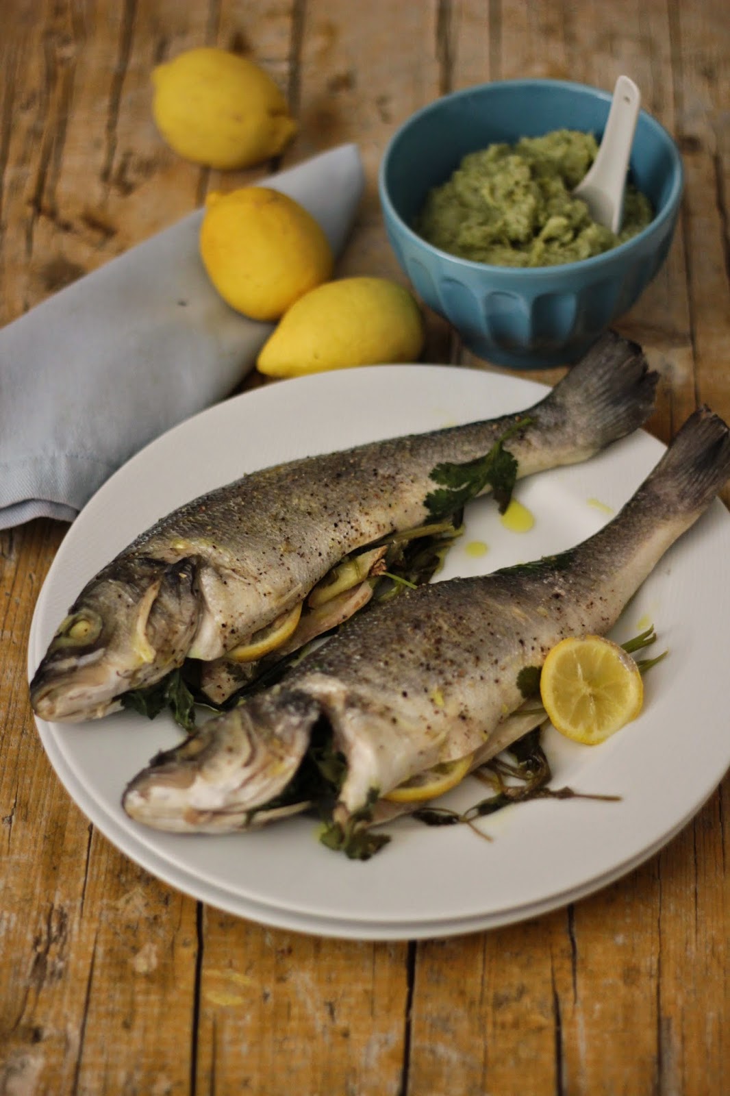 Robalinhos ao Vapor com Limão, Coentros e Gengibre e Puré de Legumes